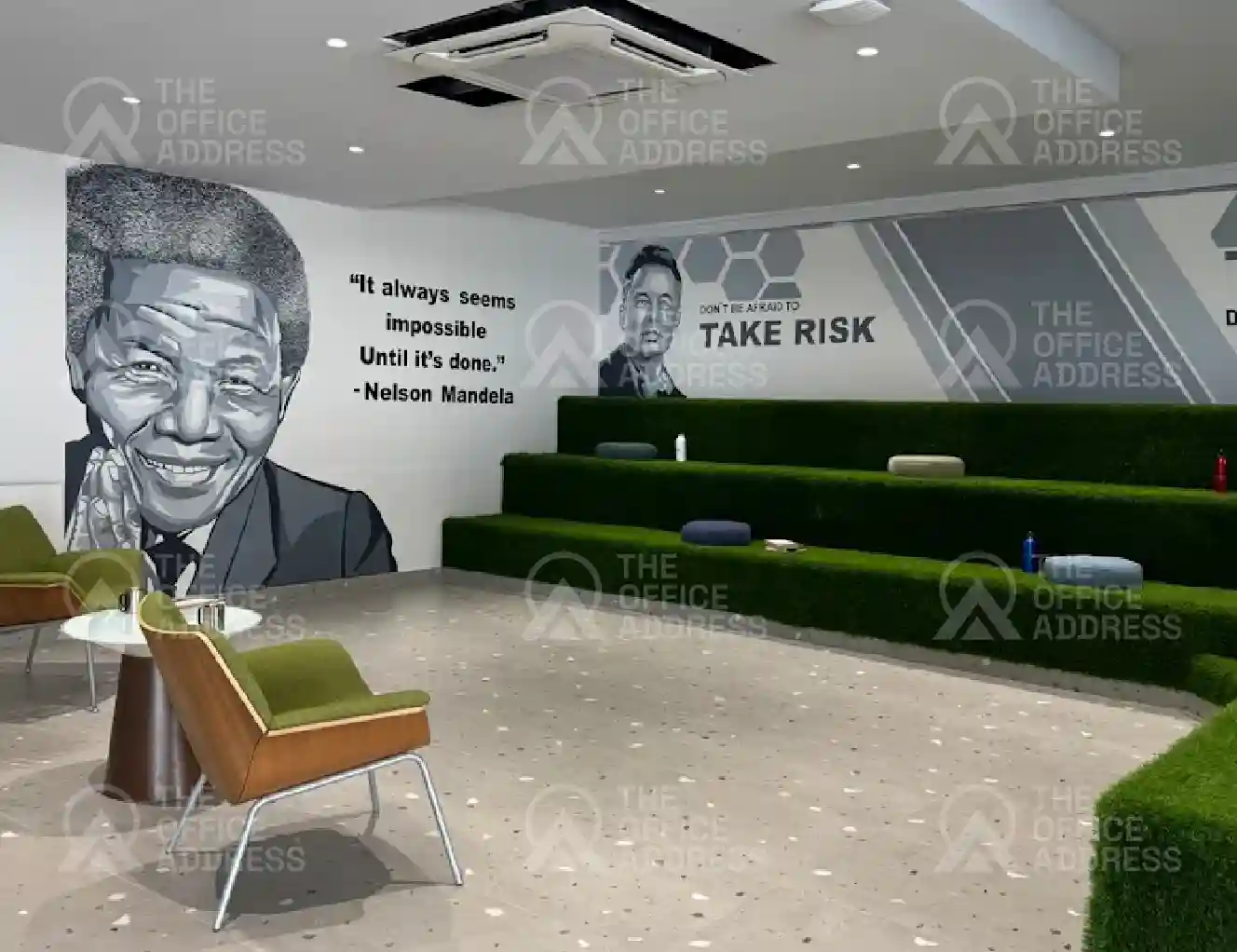 The amenities include high-speed Wi-Fi and break-out areas, conference rooms, a pantry, and reception assistance.