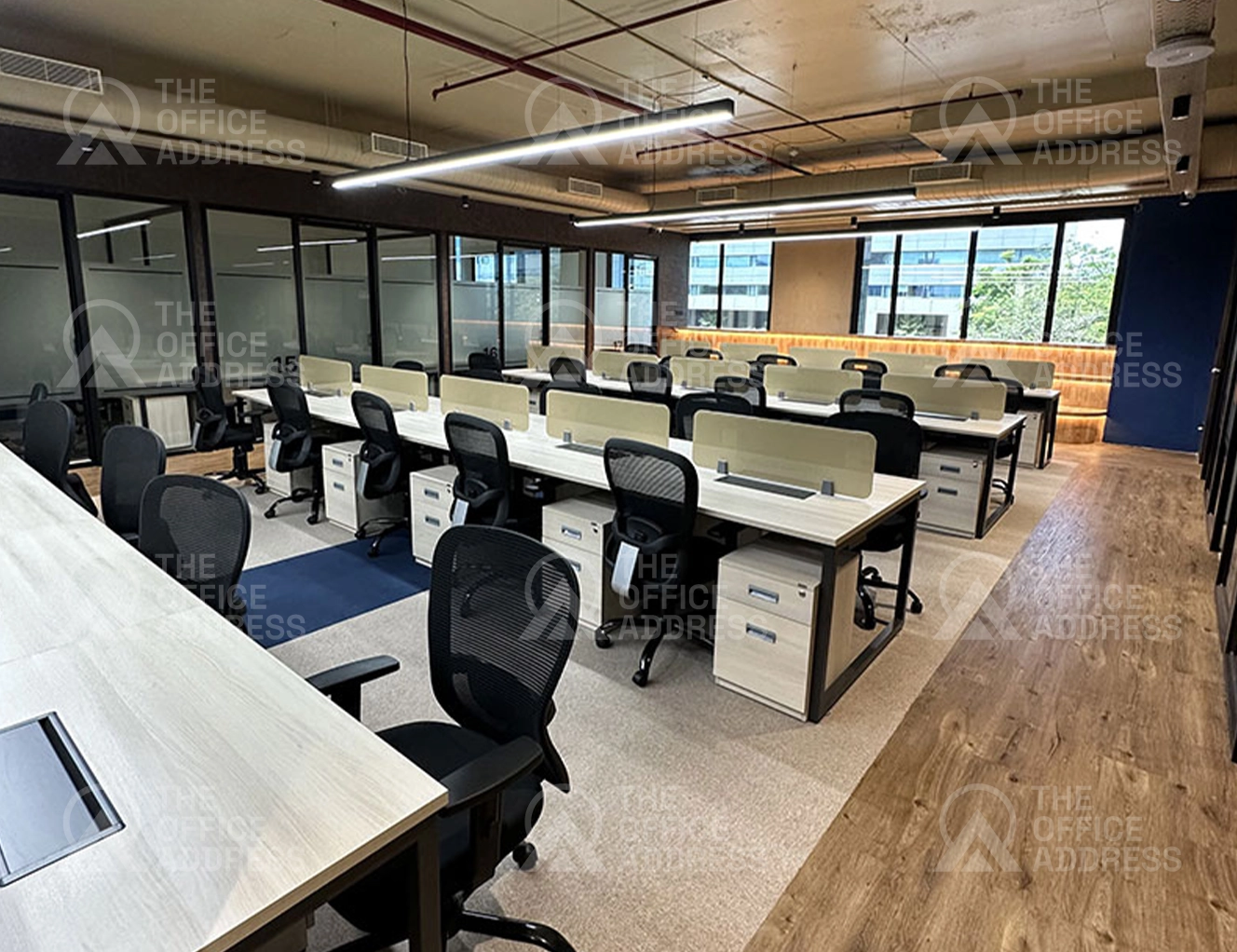 The workspace is equipped with speedy Wi-Fi, printing cafeteria access, lounge areas parking, as well as proximity to IT corridors and metros.