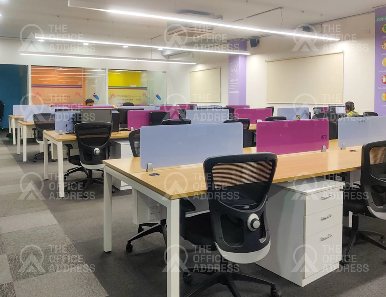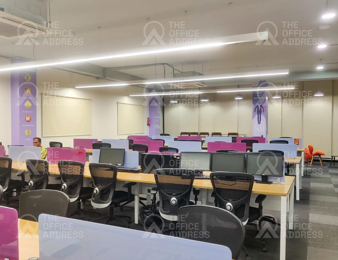 Amenities include ergonomic seating, Wi-Fi, housekeeping, pantry access, and power backup.