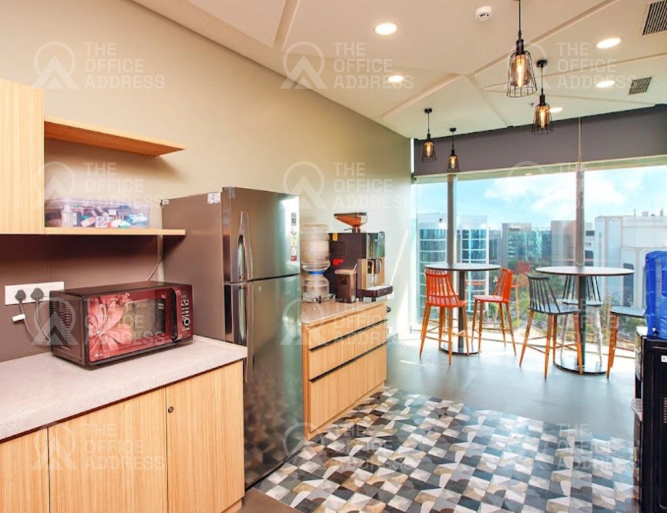 The amenities include high-speed internet meeting rooms, cafes 24/7 access and receptionist services, printing and ergonomic furniture.
