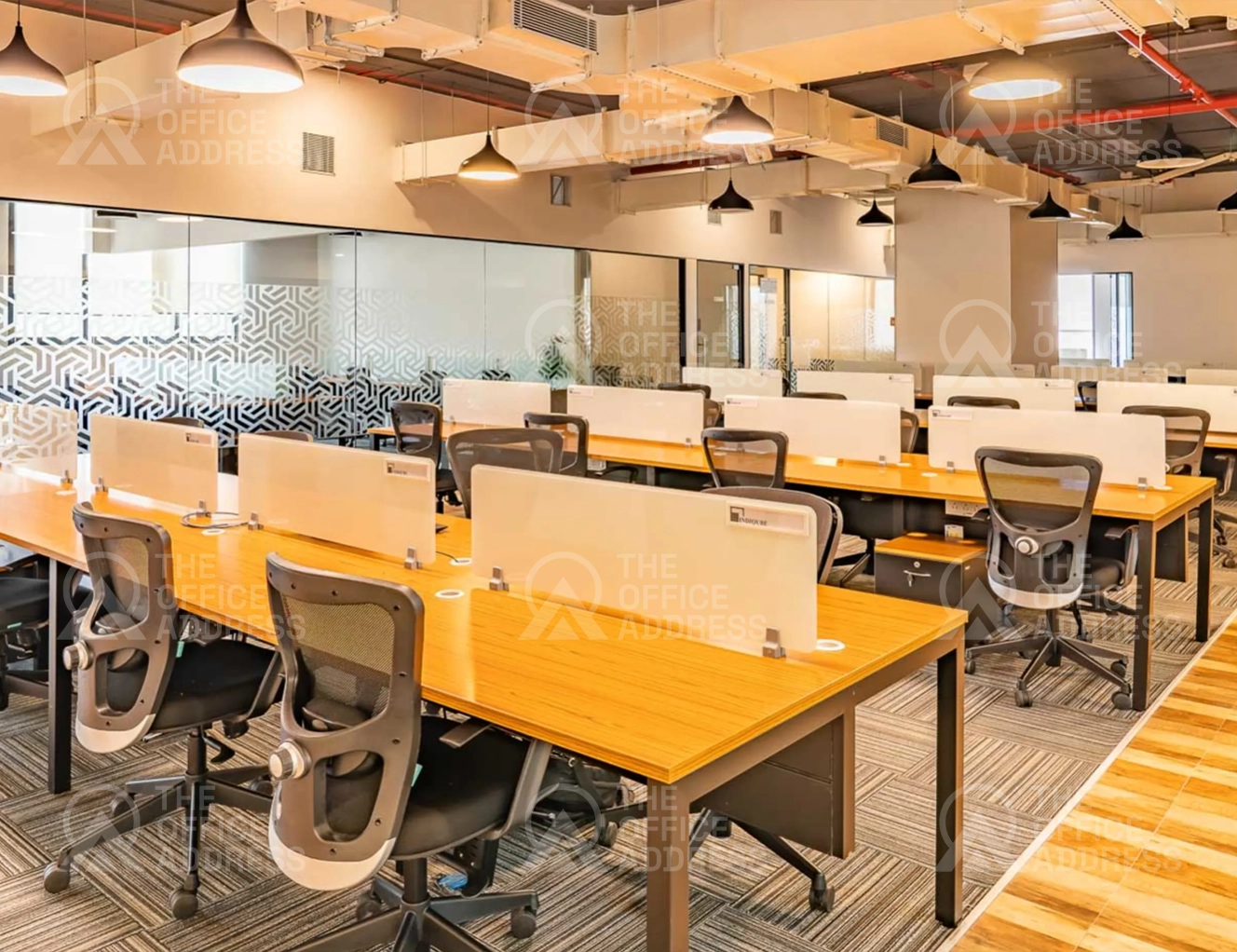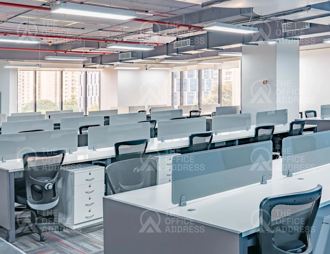 Amenities include high-speed internet, 24/7 power backup, printing and scanning services, meeting rooms, cafeteria, access control, housekeeping, and parking.