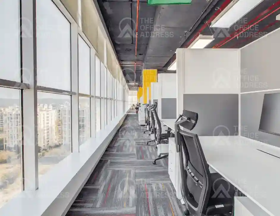 Amenities include high-speed internet, printing, pantry access, power backup, meeting lounges, and 24x7 security. The location is well-connected to the business areas such as Kharadi or Viman Nagar. There are also nearby cafés, restaurants and transportation options.