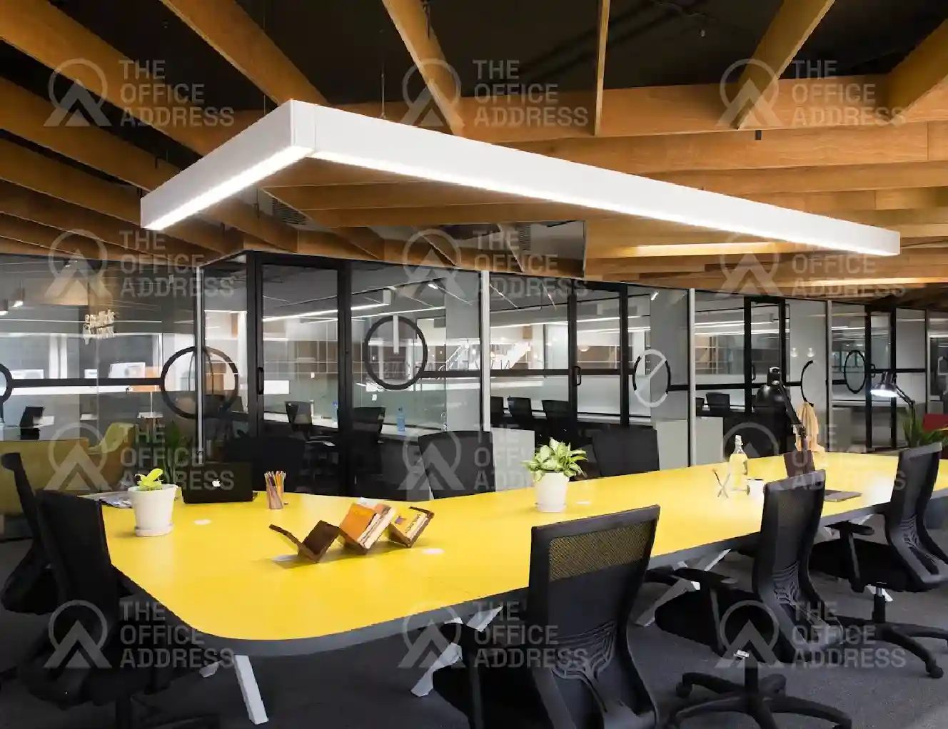 Equipped with Wi-Fi, meeting rooms, lounge zones, security, pantry, and printing facilities.