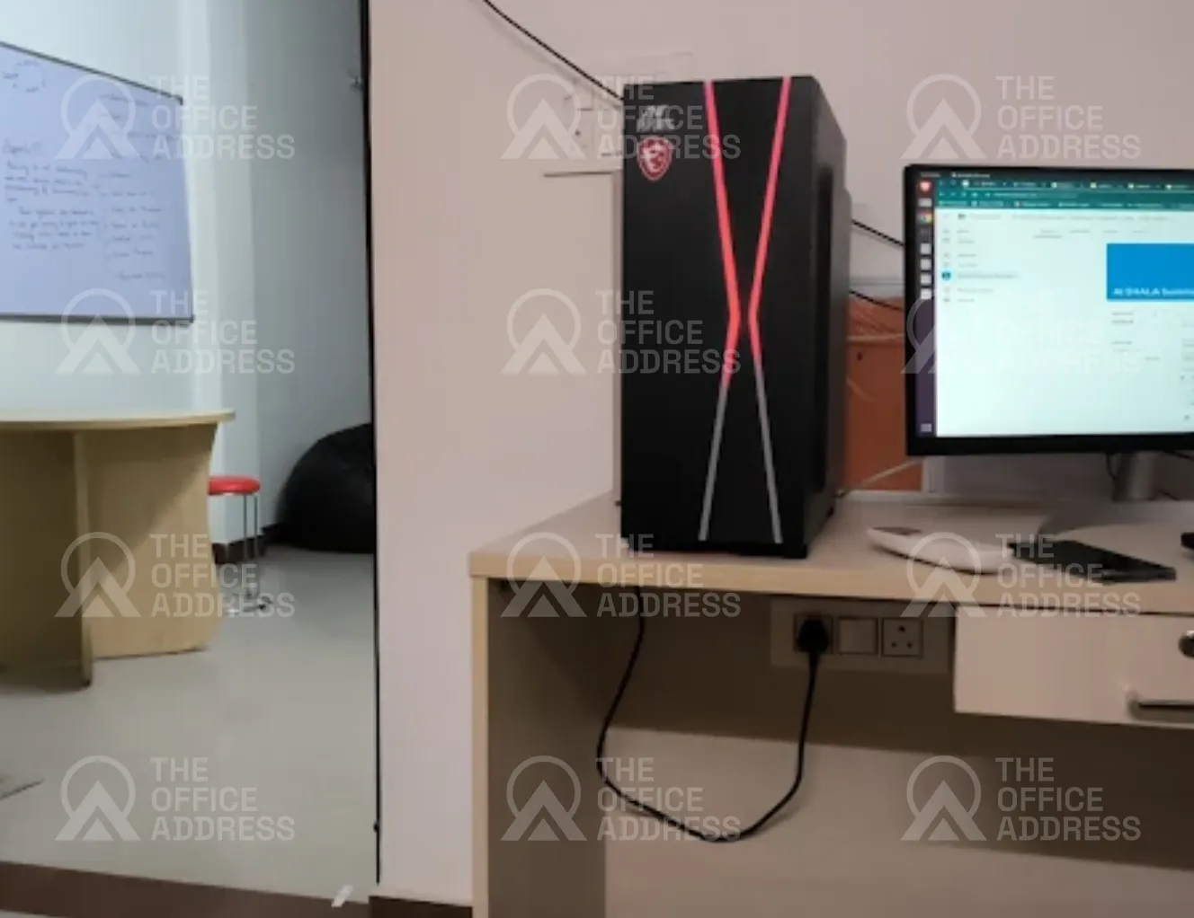 A fixed desk in a shared coworking space.