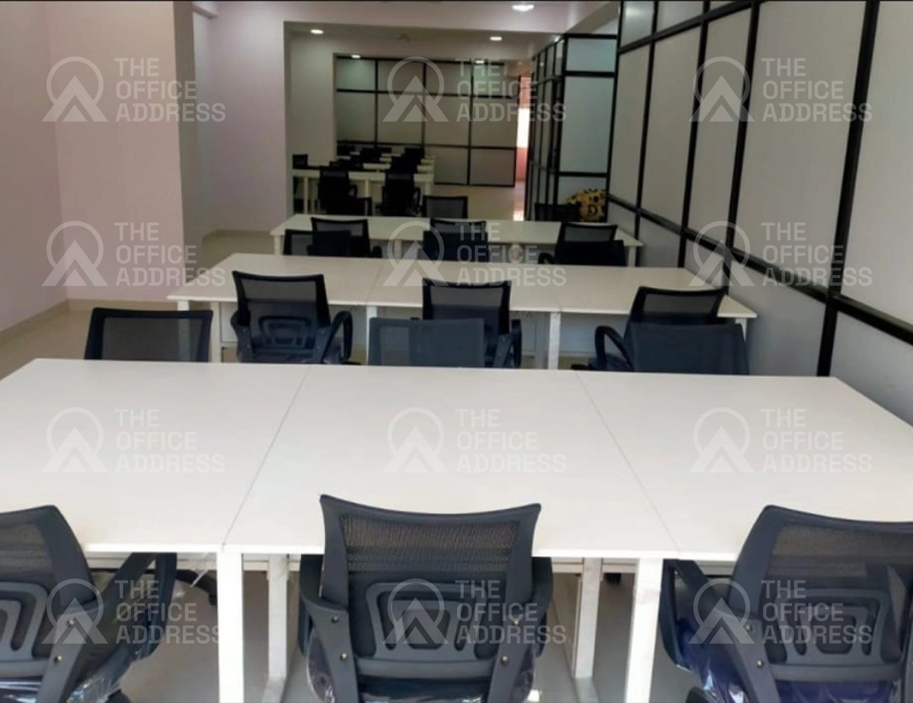 The amenities include high-speed internet, backup power, printing and scanning, meeting rooms, access to a pantry, and access control for entry. The surroundings are well-maintained, professional, and optimized for everyday business needs.