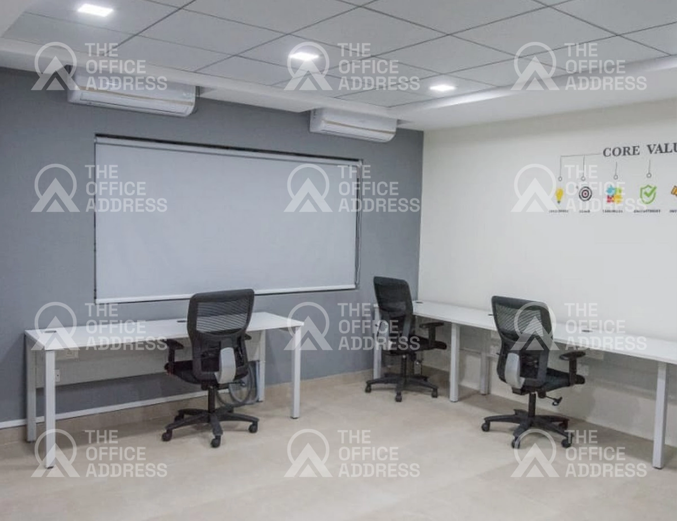 Common amenities include high-speed Wi-Fi, air conditioning, tea/coffee, power backup, water, pantry access, charging stations, and a lift.